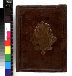 | Keywords: Book of Common Prayer - Upper cover (c82b9).jpg Style Armorial; Caption Upper cover; Colour Brown; Edge Unspecified exhibition history Decorative Technique Tooled in gold; Cover Material Calf Rebacked Traces of 2 pairs of ties object history Text 1630; London; James I King of England 1603-1625 James VI of Scotland object type Cc-zero place of creation Binding England place of discovery To research armorials see British Armorial Bindings Database sponsored jointly by the Bibliographical Society and the University of Toronto http //armorial library utoronto ca British Library image http //www bl uk/catalogues/bookbindings/LargeImage aspx RecordId 020-000010004 ImageId ImageId 44607 Copyright BL Book of Common Prayer Uploaded with GWToolset Book of Common Prayer - Upper cover c82b9 http //www webarchive org uk/bldatasets/bindings/10892_4 jpg Bookbinding 17th-century bookbinding British Library Bookbindings |