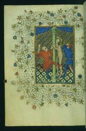 Keywords: devotional flemish christian book codex manuscript illumination miniature flanders devotion 15th century 15thcentury historiated initial historiatedinitial walters art museum waltersartmuseum notable binding notablebinding book of hours bookofhours photo border This Book of Hours was originally completed ca. 1430-1440 but has since been reconstructed, with several prayers and suffrages having been added to it over time. The miniatures were illuminated under the influence of the Master of Guillebert de Mets. Both the original and a subsequent owner are depicted in prayer on fols. 9v and 165v, respectively. The book was rebound by Joris de Gavere of Ghent ca. 1525-1535. The manuscript was rebacked in the modern period, but the sixteenth-century boards remain. Both contain stamped panels depicting angels playing instruments, and a band of fantastic animals depicted in profile. An inscription cites Joris de Gavere as the maker and asks the angels for their prayers. All manuscript images and descriptions were created and are provided through Preservation and Access grants awarded to the Walters Art Museum by the National Endowment for the Humanities, 2008-2015. Access a complete set of high-resolution archival images of this manuscript for free on The Digital Walters (www.thedigitalwalters.org/01_ACCESS_WALTERS_MANUSCRIPTS.html). For a digital “turning the pages” presentation of the manuscripts and downloadable PDFs, visit the Walters Art Museum’s Website (art.thewalters.org/browse/category/manuscript-and-rare-bo...). This Book of Hours was originally completed ca. 1430-1440 but has since been reconstructed, with several prayers and suffrages having been added to it over time. The miniatures were illuminated under the influence of the Master of Guillebert de Mets. Both the original and a subsequent owner are depicted in prayer on fols. 9v and 165v, respectively. The book was rebound by Joris de Gavere of Ghent ca. 1525-1535. The manuscript was rebacked in the modern period, but the sixteenth-century boards remain. Both contain stamped panels depicting angels playing instruments, and a band of fantastic animals depicted in profile. An inscription cites Joris de Gavere as the maker and asks the angels for their prayers. All manuscript images and descriptions were created and are provided through Preservation and Access grants awarded to the Walters Art Museum by the National Endowment for the Humanities, 2008-2015. Access a complete set of high-resolution archival images of this manuscript for free on The Digital Walters (www.thedigitalwalters.org/01_ACCESS_WALTERS_MANUSCRIPTS.html). For a digital “turning the pages” presentation of the manuscripts and downloadable PDFs, visit the Walters Art Museum’s Website (art.thewalters.org/browse/category/manuscript-and-rare-bo...).