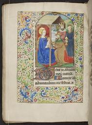 | Keywords: medieval renaissance illumination book of hours bookofhours adoration of the magi adorationofthemagi picture frame indoor This Book of Hours was copied in Eastern France between 1425 and 1475. The miniature pictured is one of twelve large miniatures in gold frames, arched at the top and with three or four lines of text underneath. This leaf at the beginning of Sext for the Hours of the Virgin features the Adoration of the Magi. The three kings with their gifts of gold, frankincense and myrrh can be seen kneeling before the Virgin and her son. The full floral-acanthus border includes a peacock at the base. Immediately below the miniature is a 3-line initial in red, orange, and blue with white tracery on a gold ground. The Book of Hours was a medieval prayer book used by laymen for private devotion. These books were created for both men and women, but their place in female devotion is particularly noteworthy. The text centres on the Hours of the Virgin, a series of prayers to be said at the eight canonical hours of Matins, Lauds, Prime, Terce, Sext, None, Vespers, and Compline. This Book of Hours was copied in Eastern France between 1425 and 1475. The miniature pictured is one of twelve large miniatures in gold frames, arched at the top and with three or four lines of text underneath. This leaf at the beginning of Sext for the Hours of the Virgin features the Adoration of the Magi. The three kings with their gifts of gold, frankincense and myrrh can be seen kneeling before the Virgin and her son. The full floral-acanthus border includes a peacock at the base. Immediately below the miniature is a 3-line initial in red, orange, and blue with white tracery on a gold ground. The Book of Hours was a medieval prayer book used by laymen for private devotion. These books were created for both men and women, but their place in female devotion is particularly noteworthy. The text centres on the Hours of the Virgin, a series of prayers to be said at the eight canonical hours of Matins, Lauds, Prime, Terce, Sext, None, Vespers, and Compline. |