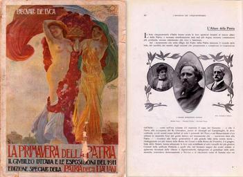 | Keywords: Book mentioning Altare della Patria in 1911.jpg Collage Scansione della copertina del volume Il giubileo d'Italia e le esposizioni del 1911 e della pagina in cui è documentato l'uso del sinonimo Altare della Patria per il Monumento a Vittorio Emanuele II Volume Il giubileo d'Italia e le esposizioni del 1911 di Pasquale De Luca edito nel 1911 come speciale del periodico Patria degli italiani Scansione del 7 luglio 2014 Ho effettuato io la scansione Libera Gep Original upload log it wikipedia Vittoriano+gi C3 A0+Altare+della+Patria+nel+1911 jpg wikitable - 2014-07-08 10 16 4953×3620× 4252453 bytes Gep <nowiki> Informazioni file Collage Scansione della copertina del volume La primavera della patria e della pagina in cui è documentato l'uso del sinonimo Altare della Patria per il Monumento a Vittorio Emanuele II Volume La prima </nowiki> Vittoriano Rome |