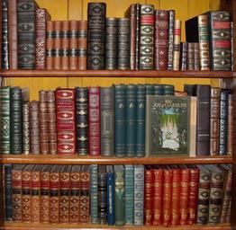 Keywords: books library bookshelf bookshop vintage antique literature classic aged elegant pattern red volumes
