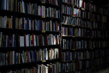 Keywords: books library shelves light shelf education ray of light bookseller used books