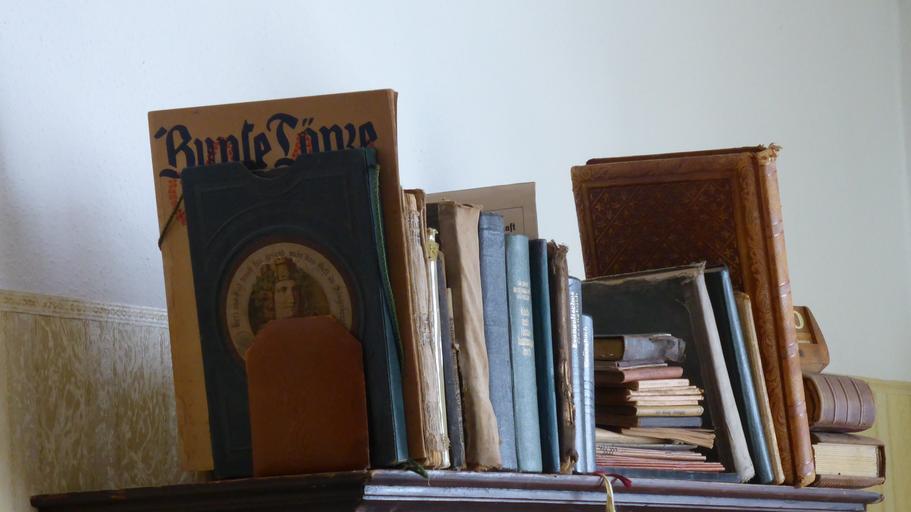 Keywords: bookshelf books old antiquariat historically read used books antiquarian literature leather covers library antique