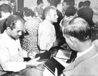 | Keywords: mennonite board of missions mennoniteboardofmissions brazil bookstore blackandwhite monochrome indoor black and white Caption: 1962. Shoppers explore the excellent selection of Bibles, books and records available after the new bookstore was dedicated. Citation: Mennonite Board of Missions Photograph Collection. Mission to Brazil, 1958-1965. IV-10-7.2 Box 2 Folder 13, Photo #73. Mennonite Church USA Archives - Goshen. Goshen, Indiana. Caption: 1962. Shoppers explore the excellent selection of Bibles, books and records available after the new bookstore was dedicated. Citation: Mennonite Board of Missions Photograph Collection. Mission to Brazil, 1958-1965. IV-10-7.2 Box 2 Folder 13, Photo #73. Mennonite Church USA Archives - Goshen. Goshen, Indiana. |