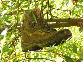 Keywords: boot hiking tree abandoned green summer spring sun light