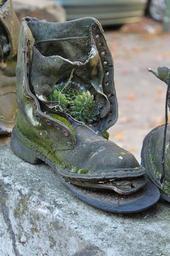 Keywords: boots bundeswehr boot shoe sole broken old decay transient plant container planted botany flora close plant ornamental plant skuril unusual deco decoration larnakes