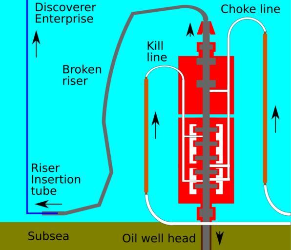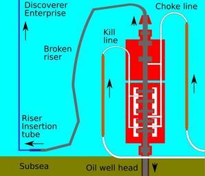 | Keywords: BOP stack top kill mode plus broken riser.svg en Schematic illustration of a subsea blowout preventer stack installed on the seabed with kill and choke lines connected for a top kill operation plus a riser insertion tube placed inside the end of a broken riser on the left Legend red represents the blowout preventer stack grey represents the oil flow passage white tubing represents the kill left and choke right lines brown represents the top of the subsea well casing the five grey rectangles within the lower red shape represent ram-type blowout preventers the two grey rectangles within the upper red shape represent annular-type blowout preventers dark blue represents the riser insertion tube placed inside the end of the broken riser lying on the seabed Own illustration created with approximate reference to the following sources http //www offshore-mag com/index/article-display/323550/articles/offshore/equipment-engineering/us-gulf-of-mexico/cameron-wins-evo-subsea-bop-stack-contract html BP technical briefing linked at http //www offshore-mag com/index/article-display/5210928327/articles/offshore/deepwater-horizon/deepwater-horizon14 html Kent Wells technical update video linked at http //bp concerts com/gom/kentwells_update24052010 htm especially the illustration at time 6 54 BBC diagram at http //news bbc co uk/2/hi/world/us_and_canada/10159626 stm Economist diagram at http //media economist com/images/images-magazine/2010/21/ST/201021STC294 gif Using Inkscape 0 47 2010-05-27 User 84user thumb left BOP stack with top kill mud lines shown thumb left stack with top kill mud lines attached thumb left stack set up for a top kill plus riser insertion tube validSVG http //validator w3 org/check uri Created with Inkscape Oceanographic diagrams Blowout preventers Subsea oil wells |
