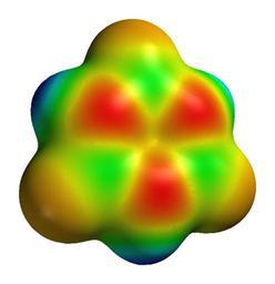 Keywords: Borazine-elpot-3D-vdW.png Electrical potential surface of the borazine molecule created with Spartan ST Own 2007-09-06 Ben Mills Benjah-bmm27 Images by Ben Mills Borazine Molecular electrical potential surfaces