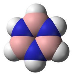 | Keywords: Borazine-from-xtal-3D-SF.png Space-filling model of the borazine molecule B<sub>3</sub>N<sub>3</sub>H<sub>6</sub> as found in the crystal structure X-ray crystallographic data from http //dx doi org/10 1002/cber 19941271011 Chem Ber 1994 127 1887-1889 Own 2009-03-01 Ben Mills Benjah-bmm27 Images by Ben Mills Space-filling models Borazine |