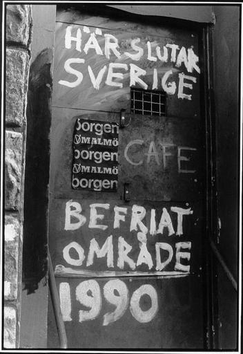 Keywords: Borgen, Malmö, 1990.jpg sv Dörren till det ockuperade huset på Ringgatan 7 i Malmö 1990 own Magnus C 1990 Borgen Malmö
