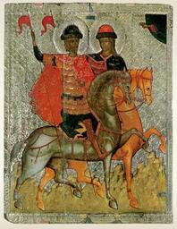 | Keywords: Boris and Gleb (c. 1377, Novgorod).jpg СВЯТЫЕ К ЯЗЬЯ БОРИС И ГЛЕБ Последняя т еть XIV века около 1377 Оклад вто ая т еть XVI века овго од Де ево липа ; темпе а; оклад се еб о; басма позолота 116 х 93 Поступила после 1931 года П оисходит из це кви Святых Бо иса и Глеба в Плотниках в Великом овго оде До вто ой четве ти XVI века являлась х амовой Раск ыта в 1919 году в ГО З П И Юкиным и В О Ки иковым под уководством А И Анисимова ГО З инв ДРЖ 1068 http //www svyatayarus ru/data/icons/86_boris_i_gleb/index php Последняя т еть XIV века около 1377 Оклад вто ая т еть XVI века Creator Unknown PD-Art Exhibition Sainte Russie Moscow 2011 - icons Icons of Boris and Gleb Files uploaded by Shakko from various sources Icons in Novgorod Art and History Museum 14th-century icons of Russia |