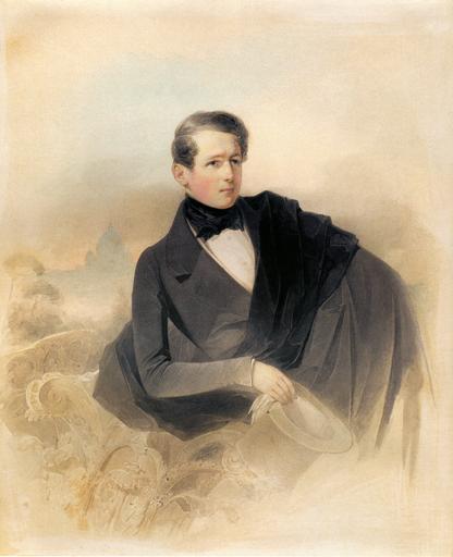 | Keywords: Boris Golitsyn in Rome by Hau.jpg ru Бо ис Дмит иевич Голицын 1819-1878 внук кн П Голицыной сын Д В Голицына от б ака с Т В Васильчиковой Гене ал-лейтенант гене ал-адъютант в юности входил в состав К ужок 16-ти был женат на Екате ине Васильевне Левашовой 1826-1853 скан Vladimir Ivanovich Hau 1839 год PD-old Male portraits by Vladimir Hau Boris Dmitrievich Golitsyn 1839 paintings from Russia Top hats in portrait paintings Fashion in 1839 1830s portraits of Russia male Portraits with gloves Location of museum or gallery missing |