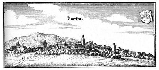 | Keywords: Borken 1646 1.jpg en Copperplate engraving of Borken Hess at 1646 de Kupferstich von Borken Hessen aus 1646 Landesgeschichtliches Informationssystem Hessen - http //web uni-marburg de/hlgl/lagis/welcome html unbekannt 1646 - Matthaeus Merian Topographia Hassiae et Regionum Vicinarum Faksimile nach der 2 Auflage 1655 neue Ausgabe Kassel 1959 S 22 1646 PD-old-100 Borken/Hessen Kernstadt |