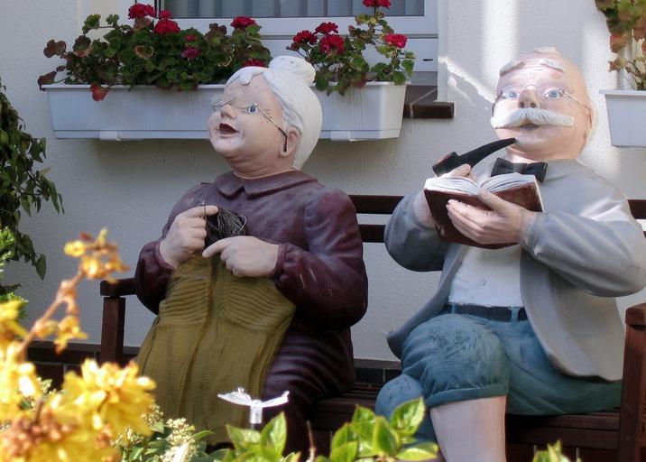 Keywords: borkum grandma grandpa woman man bank knit pipe book