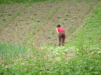 Keywords: Bosniak woman in eastern Bosnia1.JPG en Picture of a w Bosniak woman working in the field in eastern Bosnia Taken from the site of a mass grave own Polargeo 2004 Landscapes of Bosnia and Herzegovina