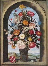 | Keywords: Bosschaert d. Ä. Ambrosius 001.jpg Artwork Q886317 Creator Ambrosius Bosschaert I LangSwitch Blumenvase in einer Fensternische Vase with flowers in a window Vaas met bloemen in een venster Alternate titles LangSwitch Bouquet in an Arched Window <ref>http //www wga hu/html/b/bosschae/ambrosiu/flower html Web Gallery of Art</ref> Bloemstilleven in een vensternis met landschap op de achtergrond <ref> still-life c 1618 Oil on panel cm 64 46 Institution Mauritshuis accession number 679 object history J de Witte van Citters Middelburg <br /> by 1902 Arnoldus Andries des Tombe 1818-1902 The Hague <br /> ProvenanceEvent 1903 bequest LangSwitch das the au het Mauritshuis The Hague Arnoldus Andries des Tombe The Hague credit line AB monogram bottom left none LangSwitch http //www mauritshuis nl/index aspx FilterId 988 ChapterId 2346 ContentId 17511 Mauritshuis in detail http //www mauritshuis nl/index aspx FilterId 974 ChapterId 1163 ContentId 14608 Mauritshuis uitgelicht <br /> 122729 The Yorck Project 10 000 Meisterwerke der Malerei DVD-ROM 2002 ISBN 3936122202 Distributed by DIRECTMEDIA Publishing GmbH http //mail wikipedia org/pipermail/wikide-l/2005-April/012195 html Ambrosius Bosschaert I - Bouquet in an Arched Window - WGA02654 jpg Version from www wga hu PD-old-100 PD-Art-YorckProject LangSwitch Notes Noten <references /> ImageNote 1 158 2643 130 84 2024 2787 2 LangSwitch Bezeichnet Signed Signé Gesigneerd AB ImageNoteEnd 1 Baroque paintings of bouquets Dutch Golden Age paintings in the Mauritshuis Bosschaert Ambrosius 1 Ambrosius Bosschaert I 1618 1610s paintings in the Netherlands 1610s still life paintings 17th-century oil on panel paintings in the Netherlands Conches in art Vases in still-life paintings Paintings with signatures lower left Baroque paintings in the Netherlands Windows in art |