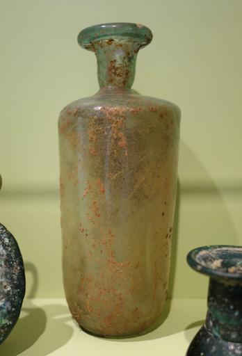 | Keywords: Bottle, attributed to southern Syria, 200-300 AD, free-blown glass, waisted neck, rolled and flared rim - Huntington Museum of Art - DSC04833.JPG en Exhibit in the Huntington Museum of Art Huntington West Virginia USA Photography was permitted in the museum without restriction This artwork is in the public domain because the artist died more than 70 years ago 2013-05-16 13 38 37 own Daderot cc-zero Uploaded with UploadWizard Glassware in the Huntington Museum of Art 3rd-century glassware |