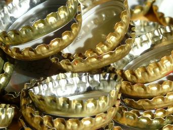 Keywords: bottle caps sheet sheet metal piece crown shaped gold golden sparkle closure bottle