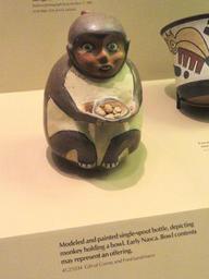 | Keywords: Bottle, monkey holding bowl - Nazca pottery in the American Museum of Natural History - DSC06104.JPG Exhibit in the South American collection of the American Museum of Natural History Manhattan New York City New York USA Photography was permitted in the museum without restriction Daderot 2012-04-02 11 39 13 Daderot cc0 cc0 Nazca pottery in the American Museum of Natural History Monkeys in Pre-Columbian art Nazca ceramic effigy vessels | ||||
