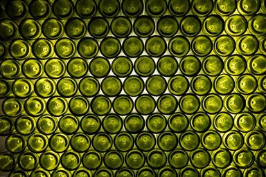 Keywords: bottles bottom of the bottle green wine wine bottles shelf plays of light shiny