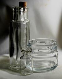 Keywords: bottles glass clear reflecting varied bottle transparent empty container jar storage lid glassware kitchenware