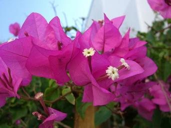 Keywords: bougainvillea flowers four o'clock plant close pistil bush summer pink purple blütenmeer nature plant mediterranean greece