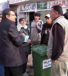 | Keywords: Bountyhunters, Iraqi Security Forces kick start sanitation program in Sab al Bour DVIDS144631.jpg en The Sab al Bour City Surface Developer explains to a market owner his obligation while maintaining the government of Iraq issued trash can outside of his establishment in Sab al Bour northwest of Baghdad Jan 13 Soldiers from Troop B Bountyhunter 2nd Squadron 14th Cavalry Regiment Strykehorse 2nd Stryker Brigade Combat Team Warrior 25th Infantry Division Multi-National Division “ Baghdad along with Iraqi police from the Sab al Bour IP station assisted local sanitation workers with the distribution of trash cans along two of the busiest markets streets 2009-01-13 https //www dvidshub net/image/144631 144631 2009-01-15 11 48 JOINT SECURITY STATION SAB AL BOUR IQ PD-USGov 25th Infantry Division United States Images from DoD uploaded by Fæ |