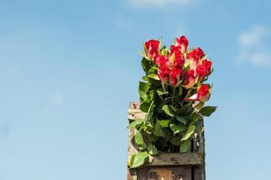 Keywords: bouquet of roses flamed bird box sky blue