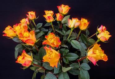 Keywords: bouquet of roses roses bouquet blossom bloom flowers orange romance top view love