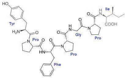 Keywords: Bovine β-casomorphin 7.png chemical en The chemical structure/peptide sequence of Bovine β-Casomorphin 7 with labeled amino acids own D Dinneen 2010-01-29 Peptides