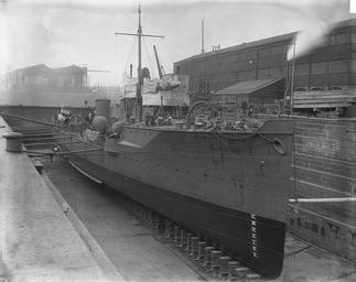 | Keywords: ww1 hawthorn leslie hawthornleslie shipbuilding hebburn hms eden hmseden warship royal navy royalnavy first world war firstworldwar river class destroyer riverclassdestroyer black and white photograph blackandwhitephotograph maritime heritage maritimeheritage chain porthole deck vessel ship bow dry dock drydock shipyard 1903 naval steam pipe roman numerals romannumerals plate steel metal platform timber rope brick concrete debris building wall roof window glass crane structure rail cloth cylinder crew workers mast pole cargo clouds sky standing clothes uniform hat light destroyer river class riverclass industry unusual sailor shipyard workers shipyardworkers blackandwhite monochrome black and white Bow view of HMS Eden in dry dock at the Hawthorn Leslie shipyard, Hebburn, 1903 (TWAM ref. 2931 Misc60). HMS Eden was a River Class destroyer, launched by Hawthorn Leslie on 13 March 1903. She was lost on 18 June 1916 after a collision with the ocean liner SS France in the Channel. The shipyard of R. & W. Hawthorn Leslie at Hebburn built many fine warships. During the First World War the firm built 2 light cruisers, 3 destroyer leaders and 25 torpedo boat destroyers. The firm also built machinery and boilers for 2 battleships, and further 3 light cruisers. These and other warships built by Hawthorn Leslie before the War, are remembered in this set. There are remarkable images of warships under construction at Hebburn, as well as fascinating shots of the people who attended the launches. The set also contains majestic views of the ships at sea. The images are not only a testimony to the skill of those who designed and built these ships but also to the courage of those who sailed in them. (Copyright) We're happy for you to share these digital images within the spirit of The Commons. Please cite 'Tyne & Wear Archives & Museums' when reusing. Certain restrictions on high quality reproductions and commercial use of the original physical version apply though; if you're unsure please email archives@twmuseums.org.uk Bow view of HMS Eden in dry dock at the Hawthorn Leslie shipyard, Hebburn, 1903 (TWAM ref. 2931 Misc60). HMS Eden was a River Class destroyer, launched by Hawthorn Leslie on 13 March 1903. She was lost on 18 June 1916 after a collision with the ocean liner SS France in the Channel. The shipyard of R. & W. Hawthorn Leslie at Hebburn built many fine warships. During the First World War the firm built 2 light cruisers, 3 destroyer leaders and 25 torpedo boat destroyers. The firm also built machinery and boilers for 2 battleships, and further 3 light cruisers. These and other warships built by Hawthorn Leslie before the War, are remembered in this set. There are remarkable images of warships under construction at Hebburn, as well as fascinating shots of the people who attended the launches. The set also contains majestic views of the ships at sea. The images are not only a testimony to the skill of those who designed and built these ships but also to the courage of those who sailed in them. (Copyright) We're happy for you to share these digital images within the spirit of The Commons. Please cite 'Tyne & Wear Archives & Museums' when reusing. Certain restrictions on high quality reproductions and commercial use of the original physical version apply though; if you're unsure please email archives@twmuseums.org.uk |