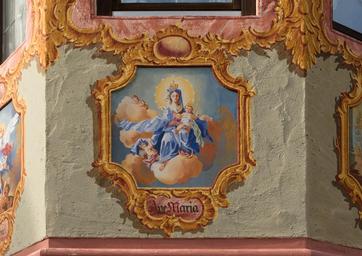 | Keywords: Bow window Ave Maria Oberammergau Bavaria Germany.jpg en Wall painting on a bow window Ave Maria Oberammergau Bavaria Germany fr Peinture murale sur un bow-window Ave Maria Oberammergau Bavière Allemagne 2013-10-20 own Jebulon other versions 47 596351 11 065868 cc-zero Bow windows Frescos in Bavaria Paintings of Madonna and Child in Bavaria Trompe l'oeil in Bavaria Madonna on the crescent in paintings Lüftlmalerei in Oberammergau Ave Maria inscription Quality images by Jebulon Quality images of Bavaria QualityImage |