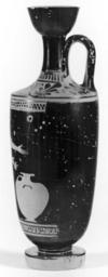 | Keywords: Bowdoin Painter - Shoulder Lekythos Depicting a Woman with a Hydria at a Fountain - Walters 48256 - Right Side.jpg This red-figure lekythos depicts a woman at a fountain Shown in profile she bends over slightly at the waist to the right both arms extended toward a large hydria which rests on the ground in front Water pours into the hydria from a spout on the upper right She wears a chiton disc earring and fillet ca 480 470 BC Classical terracotta H at shoulder 9 7/16 x Diam at shoulder 3 in 23 9 x 7 6 cm ; Diam at mouth cm 4 8 ; Diam at foot cm 5 1 accession number 48 256 27038 Joseph Brummer New York date and mode of acquisition unknown Henry Walters city Baltimore Walters Art Museum Henry Walters Acquired by Henry Walters 1924 place of origin Attica Greece Walters Art Museum license Ancient Greek red-figure pottery in the Walters Art Museum Bowdoin Painter Media contributed by the Walters Art Museum needs category review Media contributed by the Walters Art Museum needs artist update Ceramic jars Laborers in ancient Greek pottery Hydriai in art Water-carriers in art |