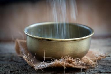 Keywords: bowl brass bowl vessel filling a trickle semolina fill in motion close food-photography