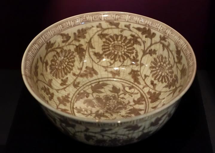| Keywords: Bowl with floral design in underglaze red, China, Hongwu Period, Ming Dynasty, 1368-1398 - Hong Kong Museum of Art - DSC00703.JPG en Bowl with floral design in underglaze red China Hongwu Period Ming Dynasty 1368-1398 - Hong Kong Museum of Art Hong Kong This artwork is in the public domain because the artist died more than 70 years ago Note although the museum did not permit photography of most items in the museum it explicitly permitted photography of this particular object both in signage and when I asked a guard Thus there are no restrictions on use of this image 2014-07-26 23 37 02 own Daderot PD-old-70 cc-zero Uploaded with UploadWizard Ceramics in Hong Kong Museum of Art Ceramics of the Ming Dynasty Ceramic bowls |