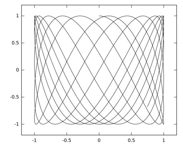 | Keywords: Box orbit full.svg A full box orbit own Gnuplot 2011-06-08 Demmo A graph of simple function doesn't warrant copyright at all Gnuplot Version 4 4 patchlevel 3 <source lang gnuplot > set term svg dynamic font sans-serif set parametric set nokey set trange 0 40 set xrange -1 2 1 2 set yrange -1 2 1 2 set samples 1000 plot sin t cos 2 1 t lc rgb black </source> Celestial mechanics Orbits Lissajous_curves Images with Gnuplot source code | ||||