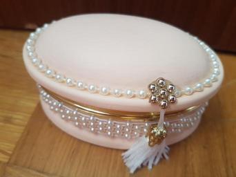Keywords: box pink jewelry vintage antique old small pearls gold golden ribbons handmade porcelain ceramics wooden fabric white pattern