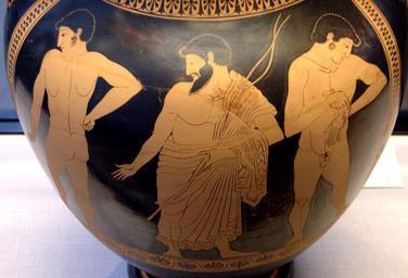 | Keywords: Boxers trainer Staatliche Antikensammlungen 2305.jpg Boxer und Trainer Seite B von einer attischen rotfigurigen Bauchamphora Boxers and trainer Side B of an Attic red-figure belly-amphora Boxeurs et entraîneur Face B d'une amphore à panse attique à figures rouges ca 500 490 BC terracotta Museum Staatliche Antikensammlungen Room 3 Beazley ARV2 182 4 object history ProvenanceEvent excavation Vulci credit line accession number Inv 2305 User Bibi Saint-Pol own work 2007-02-10 other versions <gallery> Image Departure warrior Staatliche Antikensammlungen 2305 jpg Side A </gallery> Ancient Greek boxing Trainers in art Ancient Greek Belly amphoras Kleophrades Painter Red-figure pottery in the Staatliche Antikensammlungen Staatliche Antikensammlungen - Room 3 500s BC 490s BC Ancient Greek pottery from Vulci |