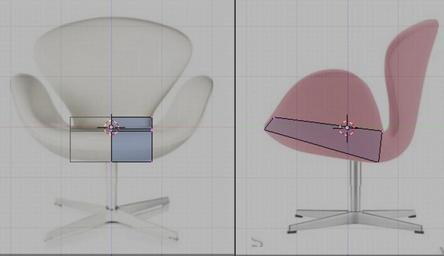 Keywords: BoxModelingSwanChairtutorialShapingChair1.png en Early state of a Swan chair model made using box modeling techniques in Blender 3d software Own Rosver 2009-08-05 Blender 3D viewports