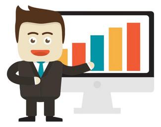 Keywords: boy businessman cartoon comic commerce communication graph icon male man monitor pointing professional