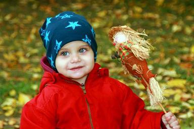 Keywords: boy child green eyes blue eyes scarecrow doll innocence beauty play portrait park red