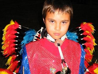 Keywords: boy child portrait head beautiful expressions face thoughtful serious native american indian tribal regalia ceremony powwow human painting young red