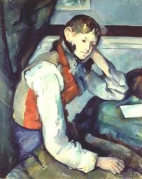 | Keywords: Boy in the Red Vest.jpg Artwork Q2270805 Creator Paul Cézanne The Boy in the Red Vest Knabe mit roter Weste Il ragazzo con il panciotto rosso pl Chłopiec w czerwonej kamizelce 紅色外套的男孩 / The Boy in the Red Vest 1889 or 1890 Oil on canvas cm 79 5 64 http //www buehrle ch/works_detail php lang en id_pic 55 Foundation E G Bührle Sammlung E G Bührle Zurich Switzerland http //www buehrle ch/works_detail php lang de id_pic 55 Stiftung Sammlung E G Bührle object history Stolen from Foundation E G Bührle in 2008 recovered in Serbia April 2012 PD-old-100 Portrait paintings by Paul Cézanne Paintings in the Sammlung E G Bührle Portrait paintings of boys Sitting people Sitting with hand on head 1880s paintings in Switzerland |