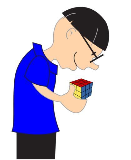 Keywords: boy man cube toy game holding playing nerd glasses interest fascination blue