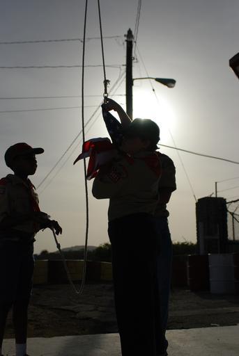 | Keywords: Boy Scout Remembrance DVIDS97906.jpg en Members of Boy Scouts Troop 435 and Cub Scouts Troop 3401 from Guantanamo Bay Cuba take down the national ensign during a flag flying ceremony at the Northeast Gate on U S Naval Station Guantanamo Bay June 17 2008 The flags will be sent to the families of the Boy Scouts killed when a tornado went through a western Iowa camp June 12 2008 The Northeast Gate separates the naval station from the rest of Cuba 2008-06-17 Petty Officer 2nd Class Nathaniel Moger https //www dvidshub net/image/97906 080617-N-+++++-043 2008-06-27 16 09 GUANTANAMO BAY CU PD-USGov-Military-Navy Naval Station Guantanamo Bay Images from DoD uploaded by Fæ |