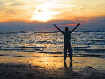 Keywords: boy sea sunset sun brand beach horizon heaven colors silhouette waves colorful sunset evening peaceful
