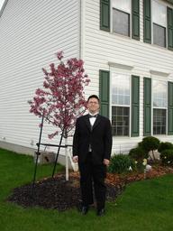 Keywords: boy suit portrait male person teenager prom in front of the house