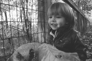 Keywords: boy toddler child kid fall autumn leaf leaves season cold outdoors leather jacket cute happy baby little adorable childhood fun young little boy caucasian family happiness small son portrait black and white