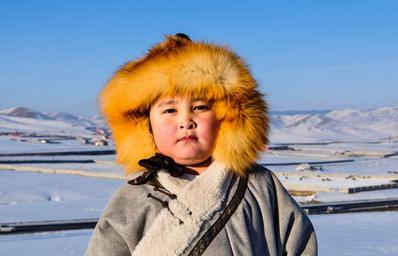 Keywords: boy winter kid mongolia snow cold hat fur tranquil white portrait sweet young child childhood innocence