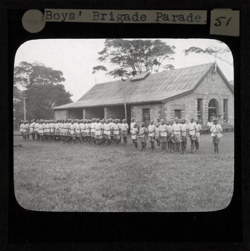 Keywords: Boy's Brigade Parade, Kenya, ca.1905-ca.1940 (imp-cswc-GB-237-CSWC47-LS7-051).jpg en <br> Boy's Brigade Parade Kenya ca 1905-ca 1940 Photograph of a Boy's Brigade Parade A group of boys in full uniform are lined up outside a brick built building A boy to the far right of the group is carrying a drum ; This belongs to a series of Church of Scotland Foreign Missions Committee lantern slides relating to the Kikuyu Mission in Kenya which was set up by Church of Scotland missionaries Hospitals were established by Scottish missionaries in Kikuyu in 1908 in Tumutumu in 1909 and in Chogoria in 1922 The missionaries also introduced the Presbyterian Church to the area The Kikuyu are Kenya's most populous ethnic group Photographer Unknown Filename imp-cswc-GB-237-CSWC47-LS7-051 tif Coverage date 1905/1940 Part of collection International Mission Photography Archive ca 1860-ca 1960 Type images Part of subcollection Photographs from the Centre for the Study of World Christianity University of Edinburgh U K ca 1900-ca 1940s Repository name Centre for the Study of World Christianity Archival file impaunpub_Volume7/1657 url Repository address The University of Edinburgh School of Divinity New College Mound Place Edinburgh EH1 2LX United Kingdom Geographic subject country Kenya Format aacr2 1 lantern slide 8 x 8 cm Geographic subject continent Africa Rights Contact the repository for details Part of series Kenya Mission LS7 Repository email divinity-CSWC ed ac uk Subject lcsh Keyword Youth movements; Parades; Rites and ceremonies Date created 1905/1940 Publisher of the digital version University of Southern California Libraries Subject aat genre group portraits Format aat lantern slides Legacy record ID impa-m68764 Access conditions http //www ed ac uk/schools-departments/divinity/research/centres/world-christianity/collections-resources File GB 237 CSWC47/LS7/51 1905/1940 author http //digitallibrary usc edu/cdm/ref/collection/p15799coll123/id/64777 PD-old-70-1923 Magic lantern images Images from USC Digital Library uploaded by Fæ International Mission Photography Archive ca 1860-ca 1960 |